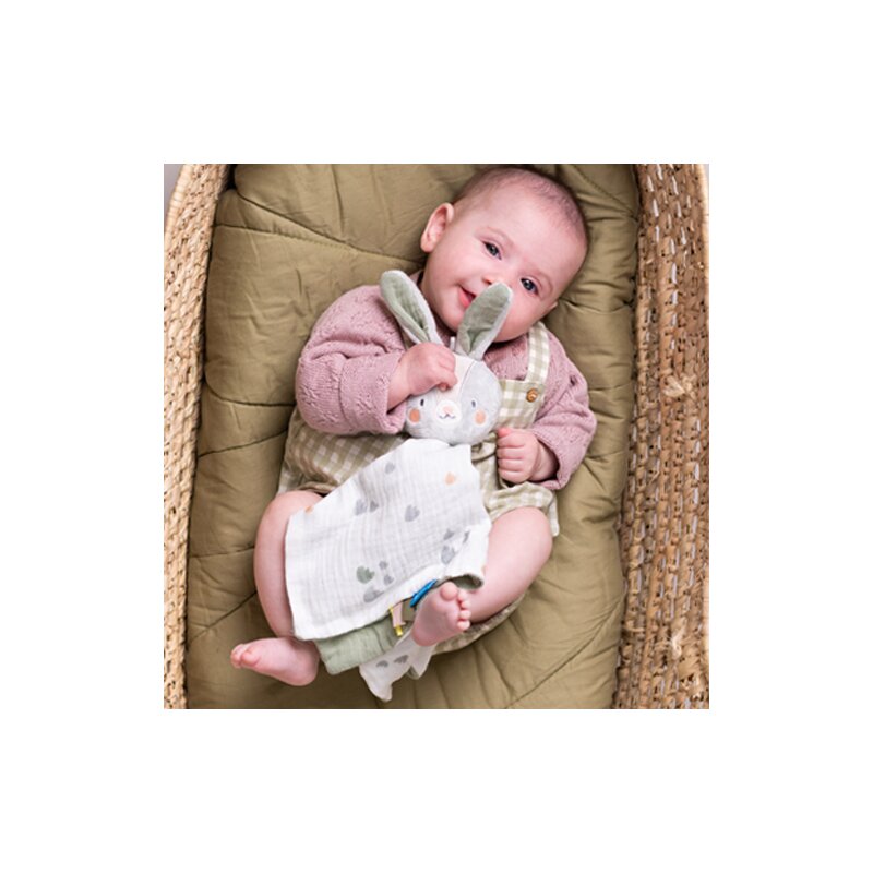 Maznacia hračka v podobe usmievavého zajačika Rylee spríjemní vášmu bábätku zaspávanie v postieľke. Maznáčik z jemného, mäkkého materiálu je vhodný ako prvá hračka dieťaťa a zároveň pomáha rozvoju zmyslov a emočnej inteligencie dieťaťa.