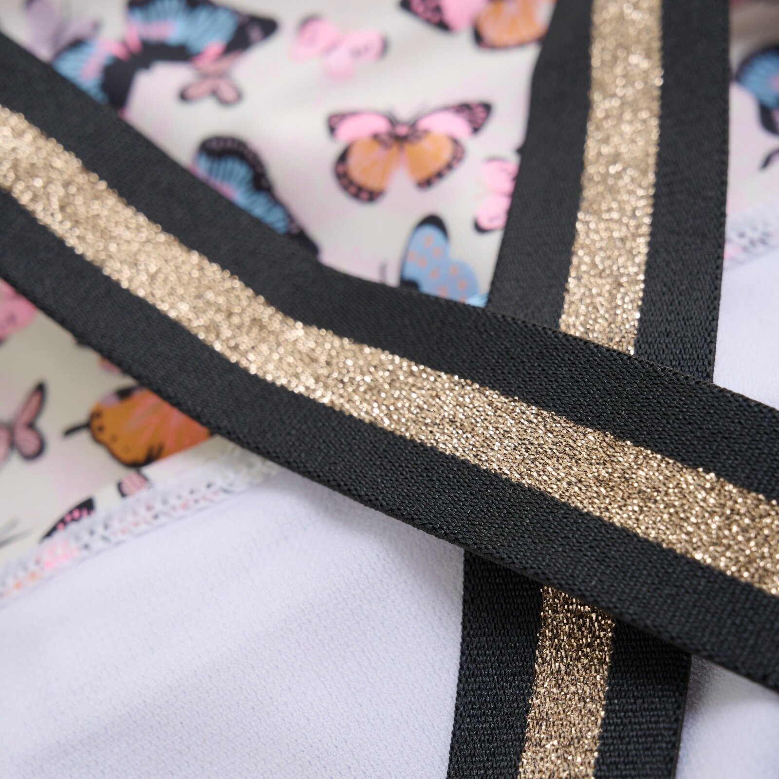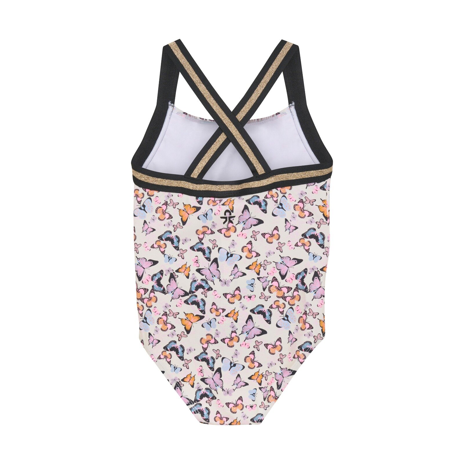 Roztomilé dievčenské plavky majú celoplošnú kvetinovú potlač. Ramenné popruhy sú na chrbte prekrížené, aby nepadali. Sú vyrobené z príjemného rýchloschnúceho materiálu.