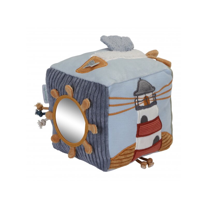 Objavujte život v okolí majáka. Farebná zbierka textúr, zvukov a postáv inšpirovaných zálivom sa snúbi v dizajne tejto mäkkej kocky plnej aktivít. Každá strana ponúka inú aktivitu, ktorá podporí koordináciu rúk a očí a vaše dieťatko zabaví. Je toho toľko, čoho sa môžete chytiť a dotknúť sa, od drzej čajky s nohami z bavlneného lana a pelikána s rybou v zobáku až po zrkadlo pre sebaobjavovanie.